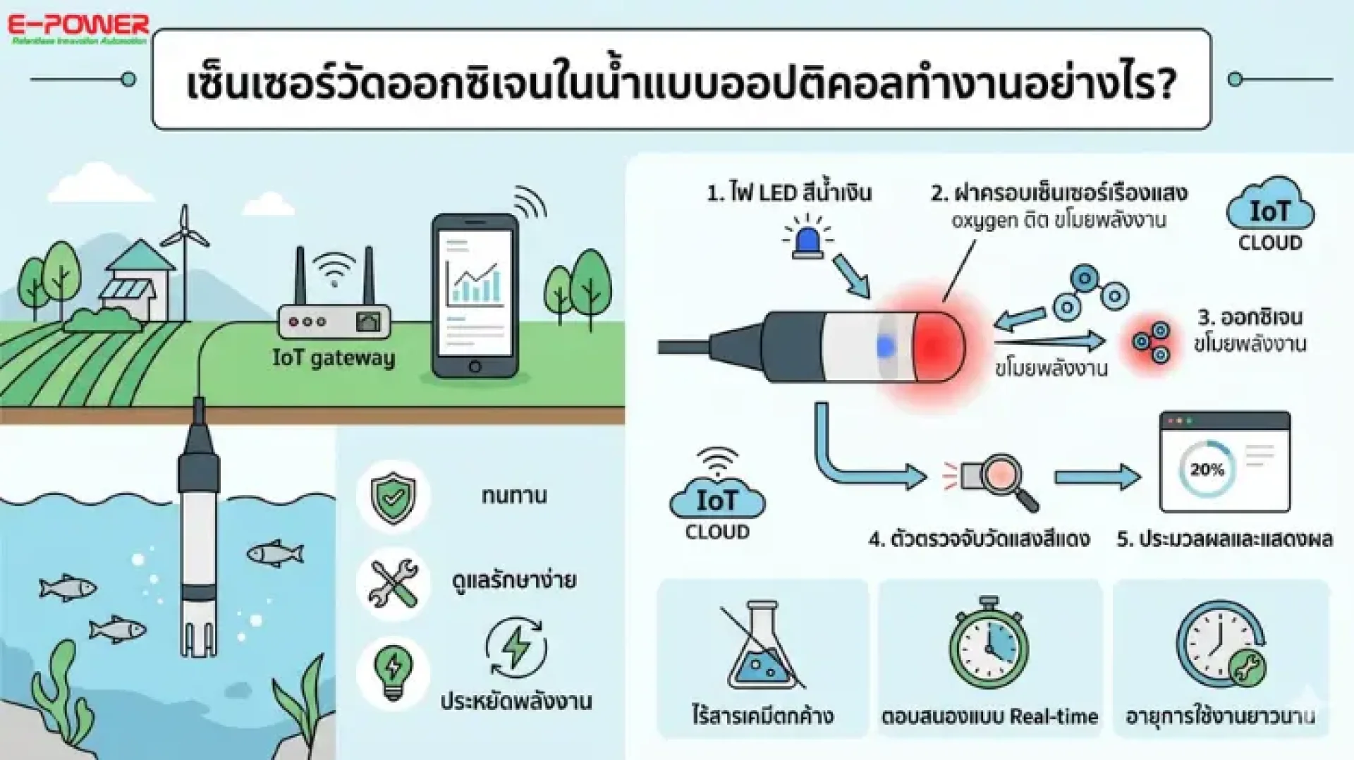 หากคุณกำลังมองหาโซลูชันเพื่อการจัดการคุณภาพน้ำระดับมืออาชีพ บริษัท อี พาวเวอร์ เซอร์วิส จำกัด ผู้นำด้านระบบ Smart Farm และ IoT Automation ขอแนะนำเซ็นเซอร์วัดคุณภาพน้ำเกรดอุตสาหกรรม (Industrial Grade) ชั้นนำอย่าง Rika Sensor และแบรนด์คุณภาพอื่นๆ ที่ออกแบบมาเพื่อความทนทานเป็นเลิศ