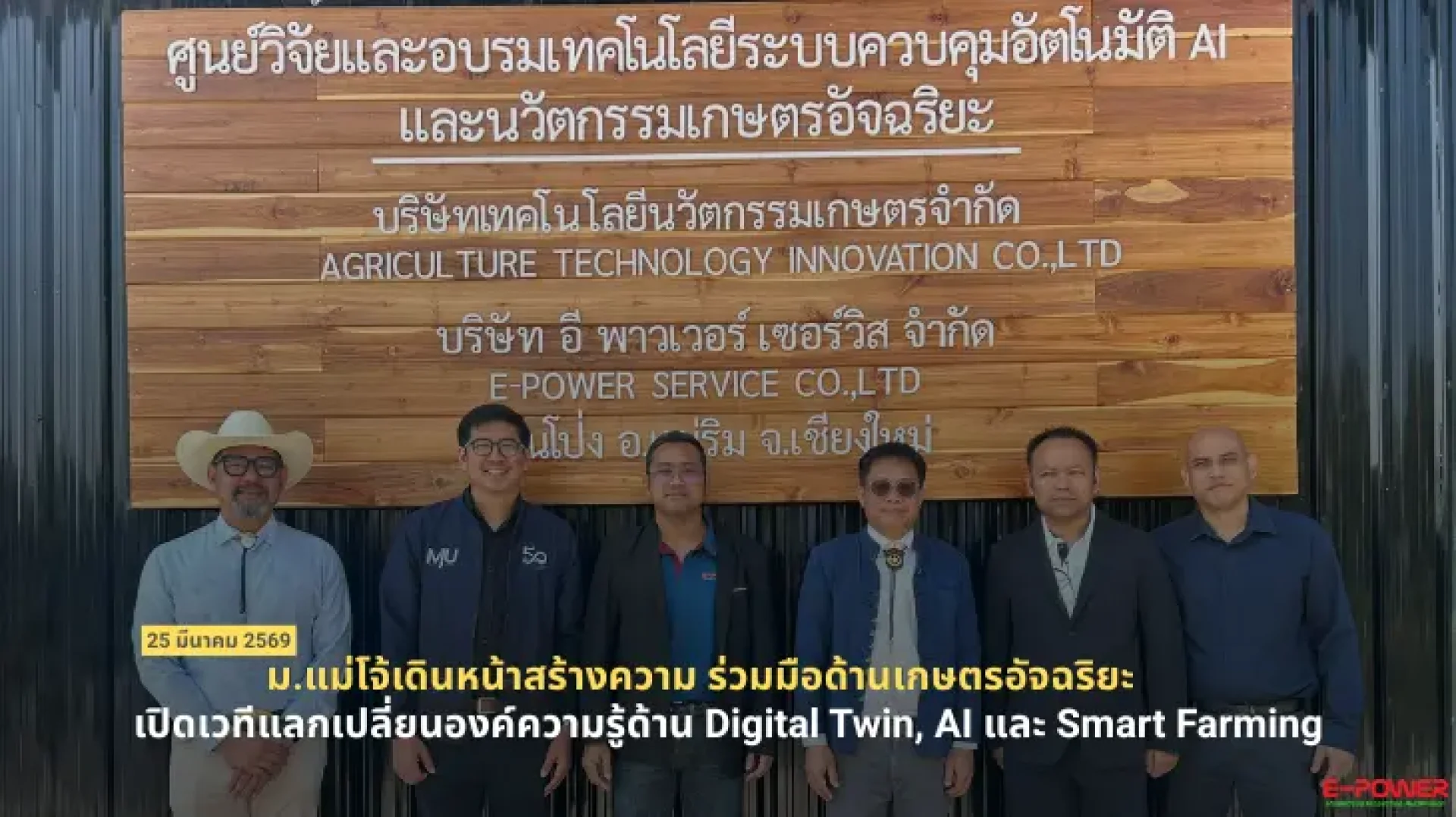 วันที่ 25 มี.ค. 69 มหาวิทยาลัยแม่โจ้ ร่วมกับ บริษัทเทคโนโลยีนวัตกรรมเกษตร (ฟาร์มแม่ริม) จ.เชียงใหม่ จัดกิจกรรมสุดเอ็กซ์คลูซีฟ "Digital Twin & Physical AI in Action" งานนี้บอกเลยว่าบรรยากาศเต็มไปด้วยการแลกเปลี่ยนไอเดียสุดล้ำ นำเทคโนโลยีแห่งอนาคตมาให้เห็นภาพการใช้งานจริงในภาคการเกษตร