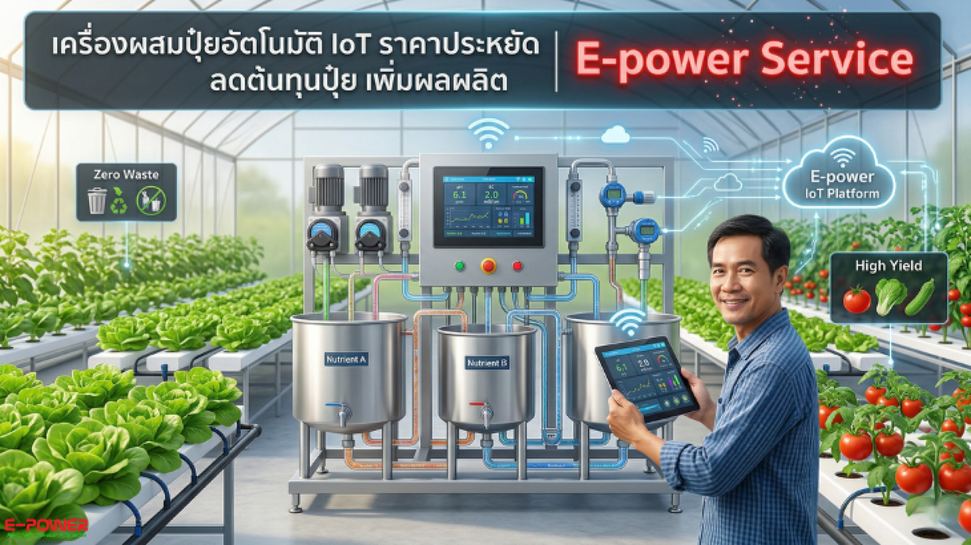 การลงทุนใน เครื่องผสมปุ๋ยอัจฉริยะ ไม่ว่าจะเป็นรุ่น Minidosing หรือ Super Jet Fertilizer ถือเป็นการวางรากฐานสำคัญให้กับ Smart Farm ของคุณ นวัตกรรมจาก E-power Service จะช่วยให้เกษตรกรสามารถบริหารจัดการฟาร์มได้อย่างเป็นมืออาชีพ ลดต้นทุนแรงงาน และเพิ่มผลกำไรในระยะยาวได้อย่างยั่งยืน