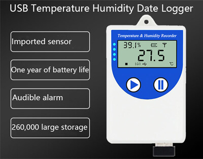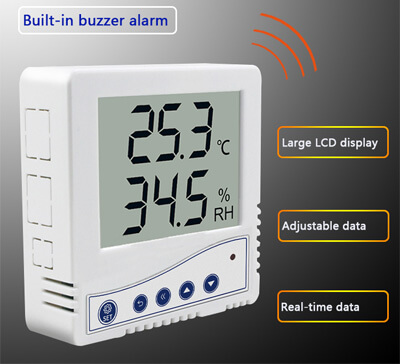 ทรานสมิตเตอร์และเครื่องบันทึกข้อมูล (Data Logger) เกรดอุตสาหกรรมอัจฉริยะ สามารถจัดเก็บข้อมูลได้ถึง 65,000 รายการ มีปุ่มกดตั้งค่า และมีเสียงเตือน (Buzzer) เมื่อค่าผิดปกติ เหมาะสำหรับห้องปฏิบัติการ คลังยา และห้องเซิร์ฟเวอร์