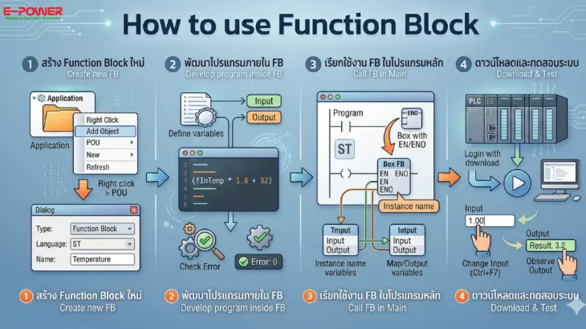 ขั้นตอนที่ 2: การพัฒนาโปรแกรมภายใน Function Block