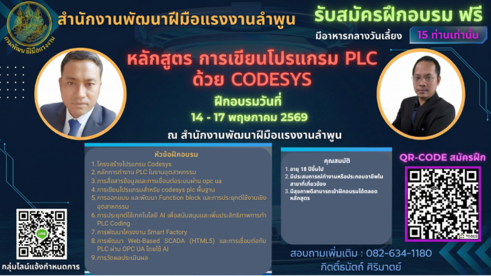 ใครที่ทำงานสาย Automation วิศวกร หรือช่างเทคนิคที่อยากอัปสกิลตัวเองสู่ยุคอุตสาหกรรม 4.0 ห้ามพลาดโอกาสนี้! สำนักงานพัฒนาฝีมือแรงงานลำพูน เปิดอบรมหลักสูตร "การเขียนโปรแกรม PLC ด้วย CODESYS" แบบจัดเต็ม สอนสด ลงมือทำจริง ที่สำคัญ เรียนฟรี มีอาหารกลางวันเลี้ยง