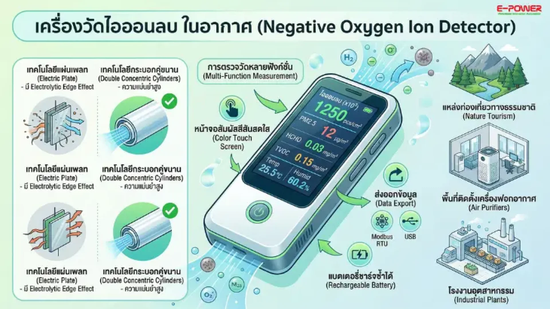 แนะนำเครื่องวัดไอออนลบ (Negative Ion Detector) รุ่นยอดนิยมจาก ePower