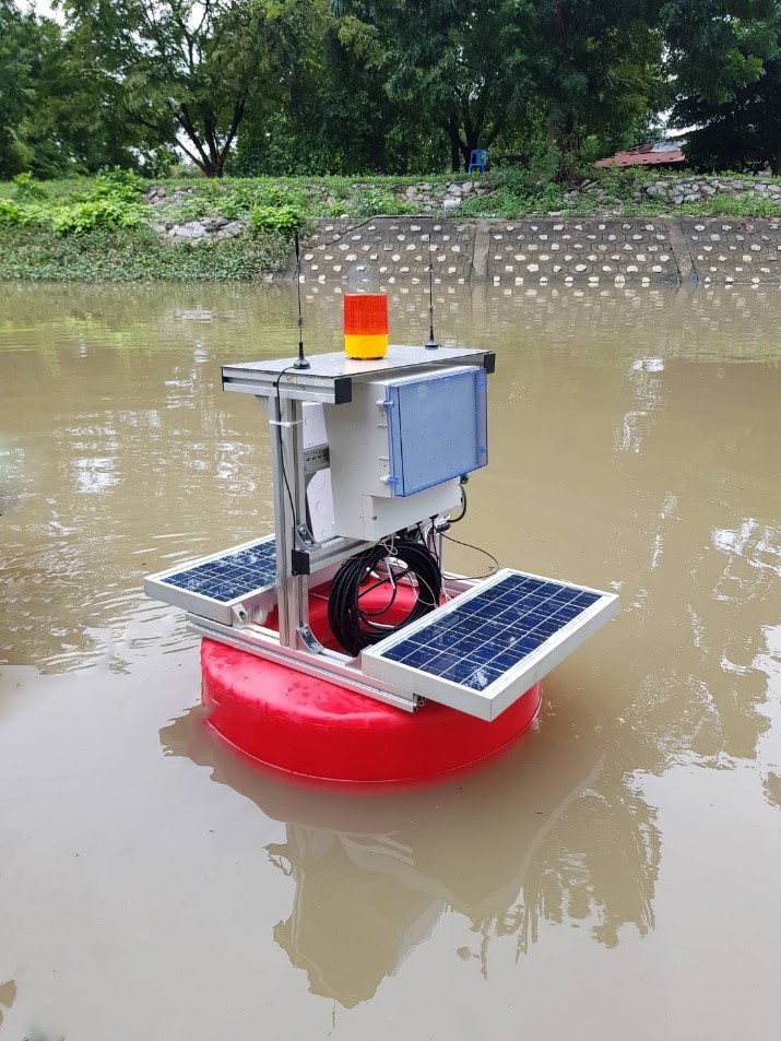 สถานีวัดคุณภาพน้ำ โดยสถานีวัดคุณน้ำจะถูกติดตั้งทุ่นไว้ที่กลางแม่น้ำ ซึ่งไม่จำเป็นต้องหน้าจอทัชสกรีนของจริง สามารถให้หน้าจอเสมือน IoT Cloud Box CBOX และมอนิเตอร์ค่าคุณภาพน้ำได้ผ่านสมาร์ทโฟนโดยในโปรเจคนี้จะใช้ IoT Cloud Box CBOX ทำหน้าที่ในการอ่านค่าเซนเซอร์ Do ใช้การสื่อสาร RS485 ( IoT Cloud Box CBOX มีพอร์ตรับรอง RS485 1 ช่อง ) โดยใช้การเขียนโปรแกรม Haiwell Scada เขียนอ่านข้อมูลและแสดงผ่านบน IoT Cloud Box