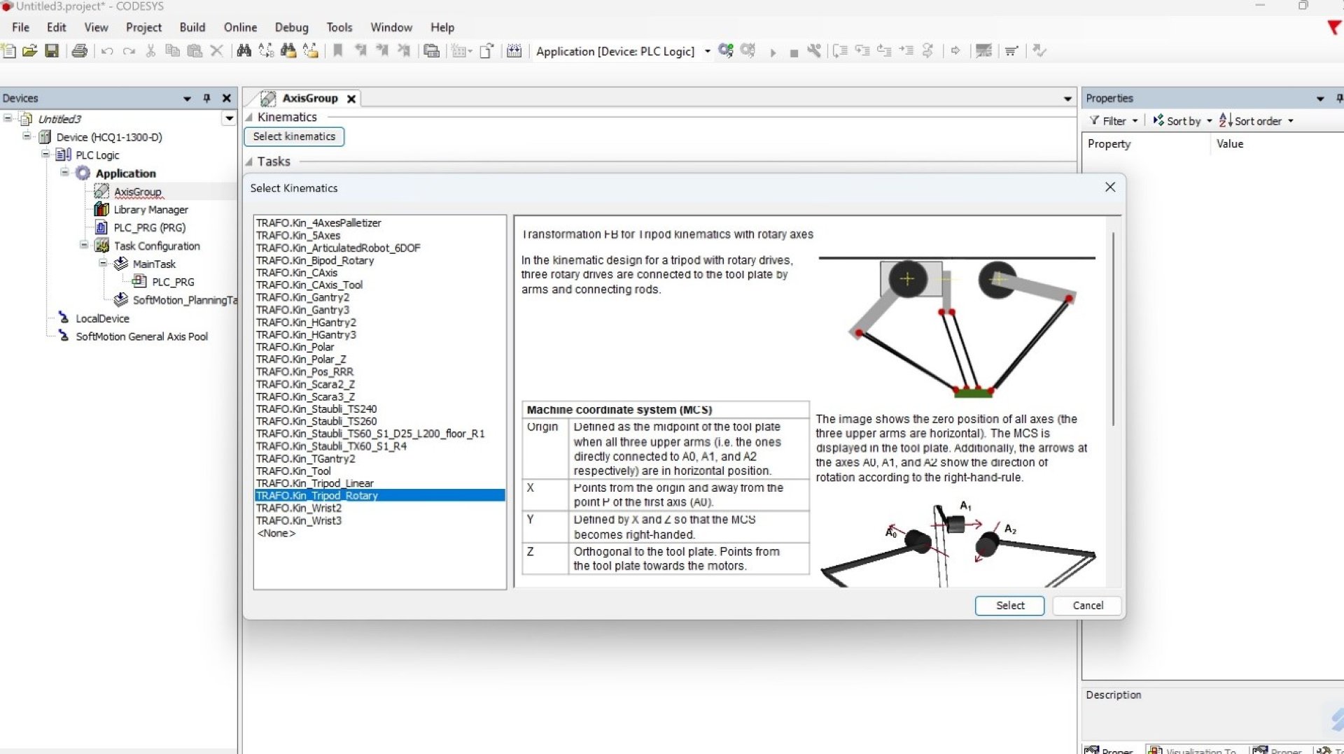 ข้อเด่นประการที่สาม และทีมงานของเราตั้งใจพัฒนากันอยู่นั้นก็คือ Robotic Kinematics ซึ่ง codesys ใส่ไว้ในตัวทำให้เราสามารถสร้างหุ่นยนต์ได้เองเลย โดยไม่ต้องอาศัย libraries หรือ opensource ตัวอื่นๆ มานั่งงมทำ Libraries ให้เสียเวลาทำมาหากิน เขาทำไว้เราใช้ได้เลย หรือถ้าท่านมีเวลาและเทพมากๆ ทำ libraries เองใช้ก็ยังได้ ในสมการ Kinematics นั้นเราสามารถที่จะใส่กำหนดค่า parameter ต่างๆที่ต้องใช้ทำหุ่นยนต์ ตามที่เราต้องการได้ เราสามารถทำหุ่นยนต์ได้หลากหลายรูปแบบมากๆ อาทิเช่น 3D-CNC , CNC+Robotis, Motion control , Delta Robot, Arm Robot, Gantry Robot 3axes 4axes