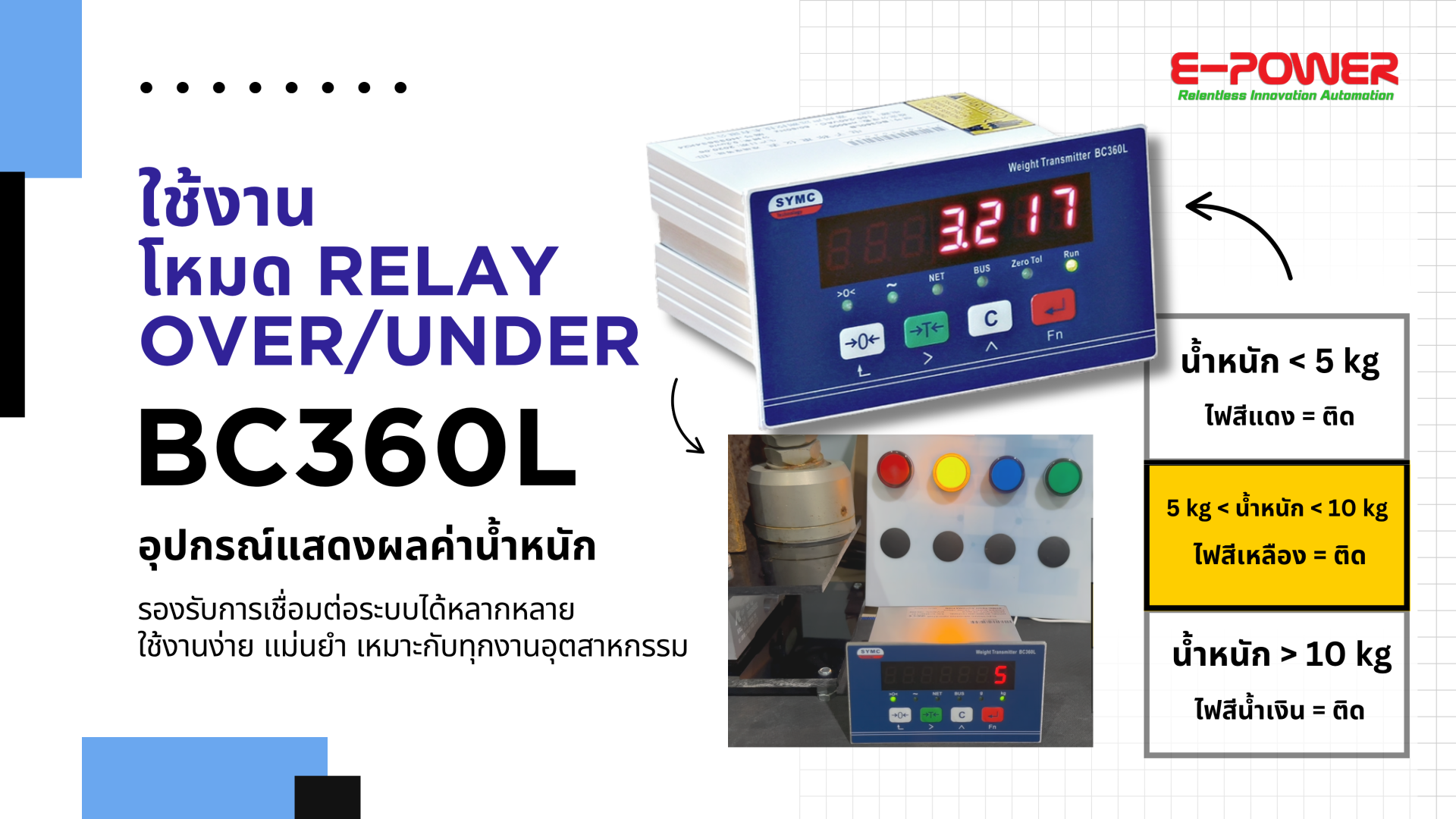 Weighting Indicator รุ่น BC360L จาก SYMC ไม่ได้เป็นเพียงแค่อุปกรณ์แสดงผลน้ำหนักจาก Loadcell เท่านั้น แต่ยังสามารถตั้งค่าให้ควบคุมอุปกรณ์ไฟฟ้าผ่านรีเลย์ได้ตามค่าน้ำหนักที่กำหนด ด้วย โหมดการทำงาน Relay Over/Under ที่ช่วยให้ระบบชั่งน้ำหนักสามารถสั่งงานอัตโนมัติตามเงื่อนไขที่ผู้ใช้งานตั้งไว้ เช่น เปิด-ปิดวาล์ว, ควบคุมสายพาน, หรือแจ้งเตือนน้ำหนักเกิน/ต่ำ