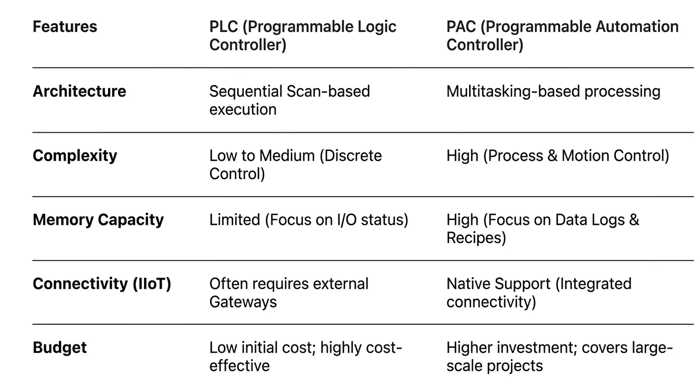 When designing an automation system, a common question for project owners and engineers is: PLC vs PAC – which one should I choose? Although both devices control machinery, they differ significantly in technical specifications and long-term "cost-effectiveness."