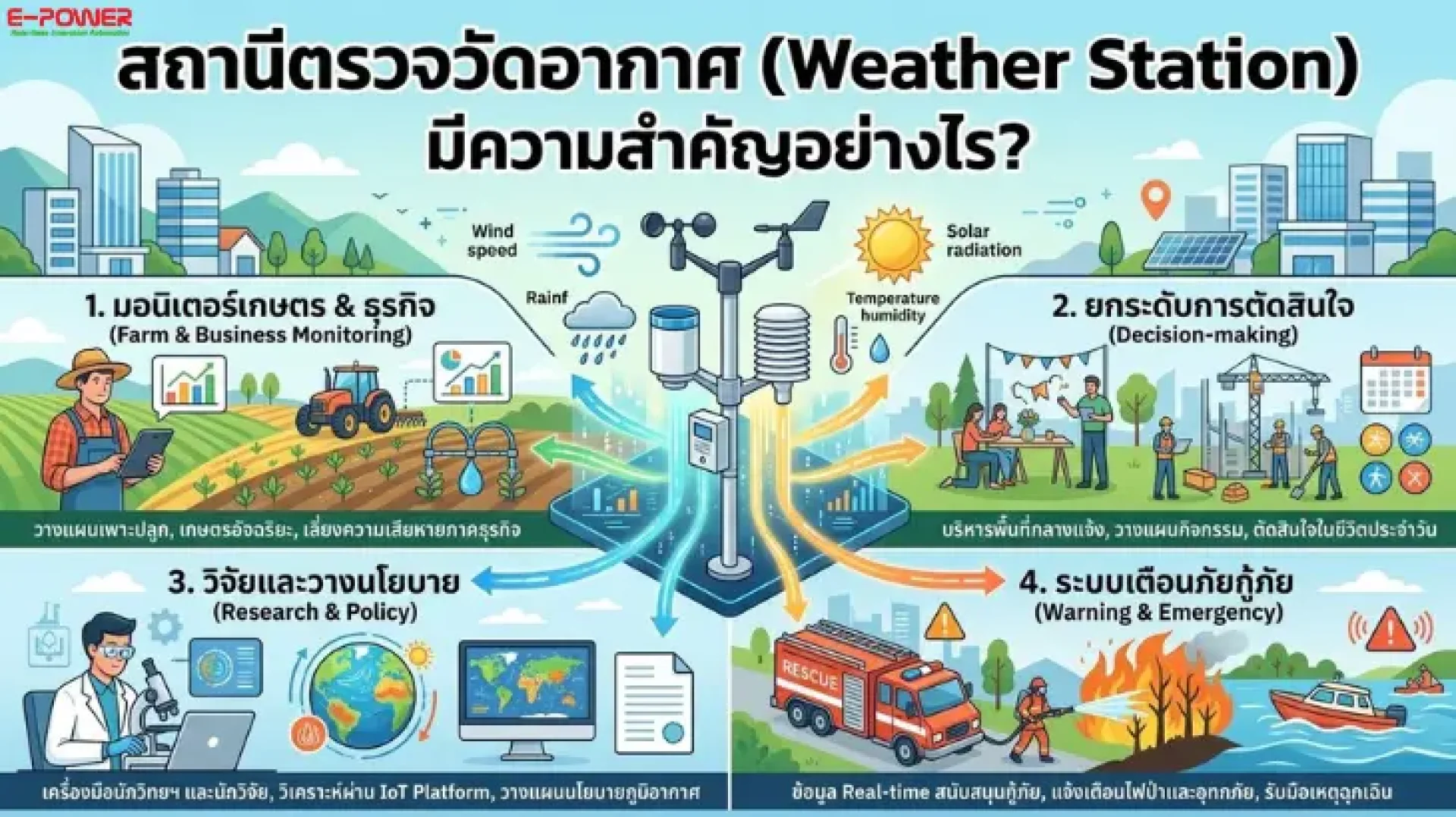 If your organization is looking for a standard Weather Station or environmental sensor solutions for Smart Farming and industrial use, consult the expert engineering team at E-Power Service: www.epower.co.th. We offer comprehensive services ranging from Instrument Sensors to SCADA and IoT Platforms.