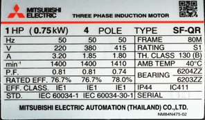Sample picture of Name Plate Induction Motor 3Phase