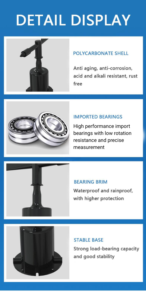 Small and lightweight in appearance, easy to carry and assemble. The new design concept can effectively obtain wind direction information. The shell is made of polycarbonate composite material, which has good anti-corrosion and anti-corrosion characteristics, ensuring that the transmitter will not deform during long-term use.
