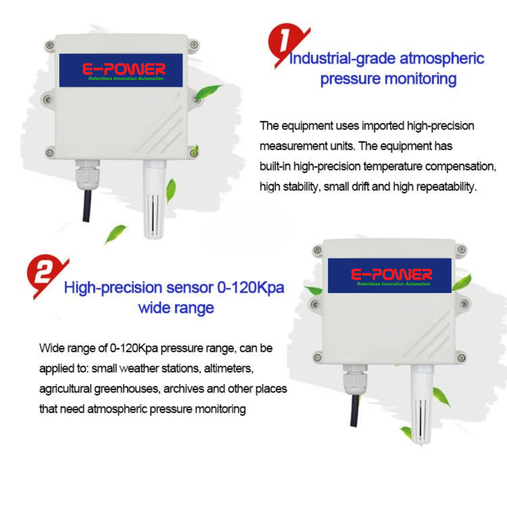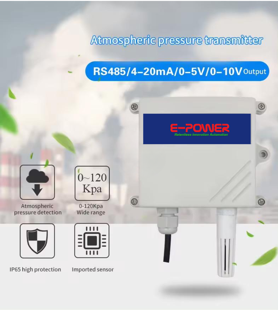 Atmospheric pressure transmitter adopts imported high-precision measuring unit. The device has built-in high-precision temperature compensation, high stability, low drift and high repeatability. It can be easily fixed to the wall by wall-mounted housing. Applicable to small weather stations, altitude meters, agricultural greenhouses, archives and other places that require atmospheric pressure monitoring and temperature measurement.