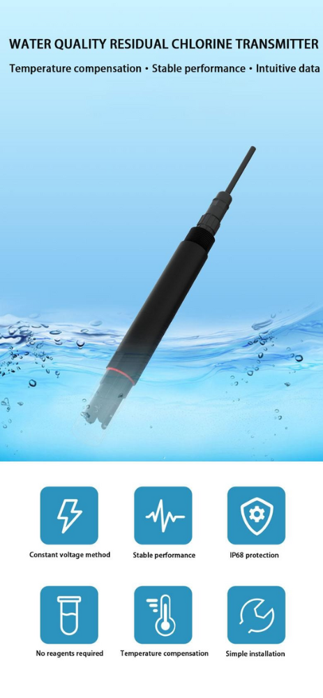 The LoRa water quality residual chlorine sensor is a device that measures the residual chlorine concentration (hypochlorous acid, hypochlorous acid ion concentration) in water bodies. Integrated design to eliminate signal interference. The use of a three electrode system has advantages such as high measurement accuracy, long working life, and no need for frequent calibration. Supports LoRa TDMA networking and standard LoRaWAN protocol.