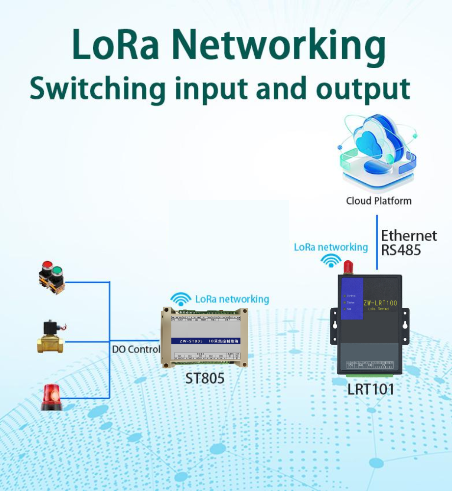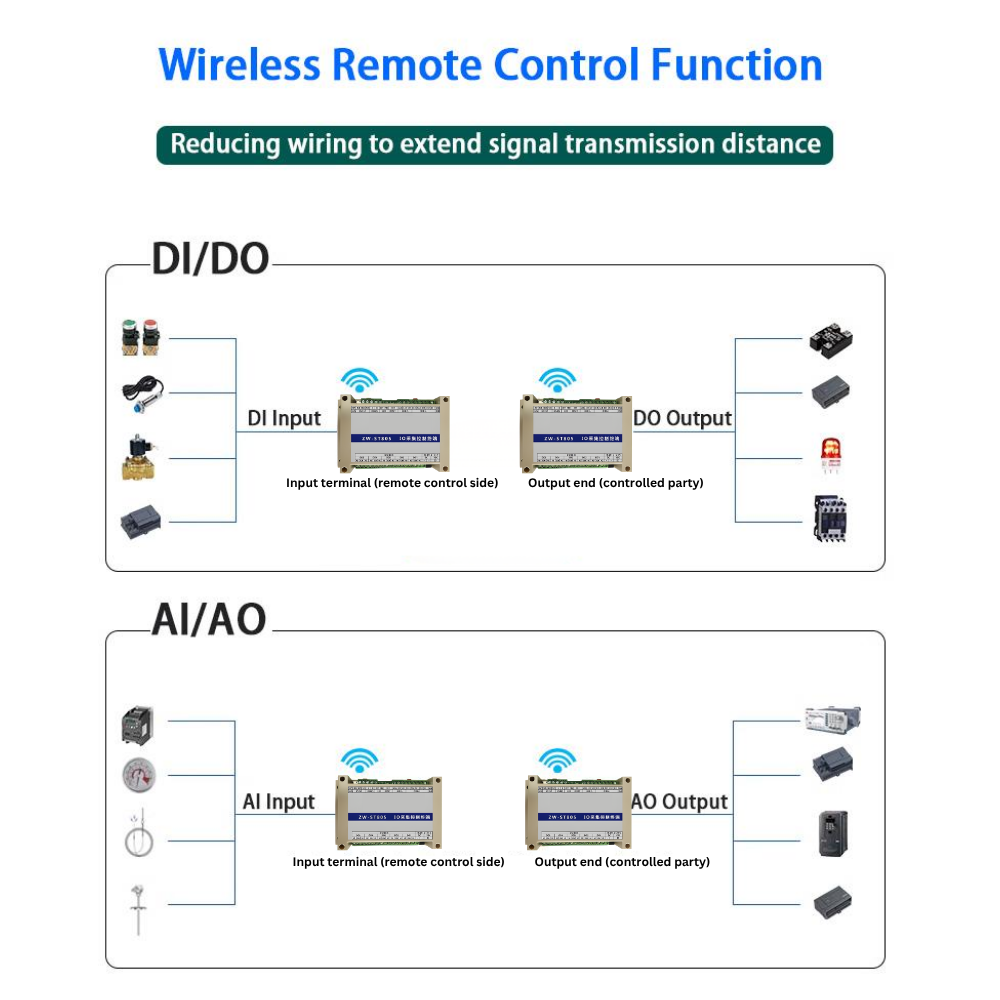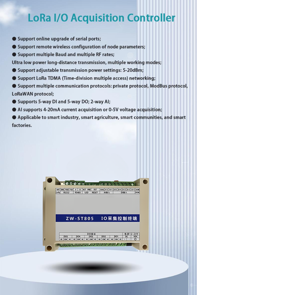 The ZW-ST805 acquisition and control terminal is a product of LPWAN (Low Power Wide Area Network).Supports various networking methods such as wireless networking and star networking based on LoRa technology, supports DI digital input detection, supports control of DO relay output control, supports AI 4-20mA current acquisition or 0-5V voltage acquisition, software and hardware WDT watchdog design, and dual monitoring of the system to ensure stable operation.