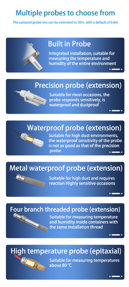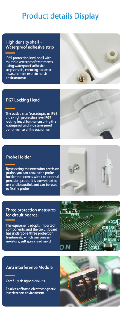 This product is a wall mounted shell with a high protection level of IP65, which is rain and snow resistant and has good breathability. The circuit adopts industrial grade microprocessor chips imported from the United States and high-precision temperature sensors imported, ensuring excellent reliability, high precision, and interchangeability of the product. This product adopts a particle sintered probe sheath, which is directly connected to the shell and has a beautiful and elegant appearance. The output signal types are divided into RS485 and can communicate up to 2000 meters. The standard ModBus protocol supports secondary development.
