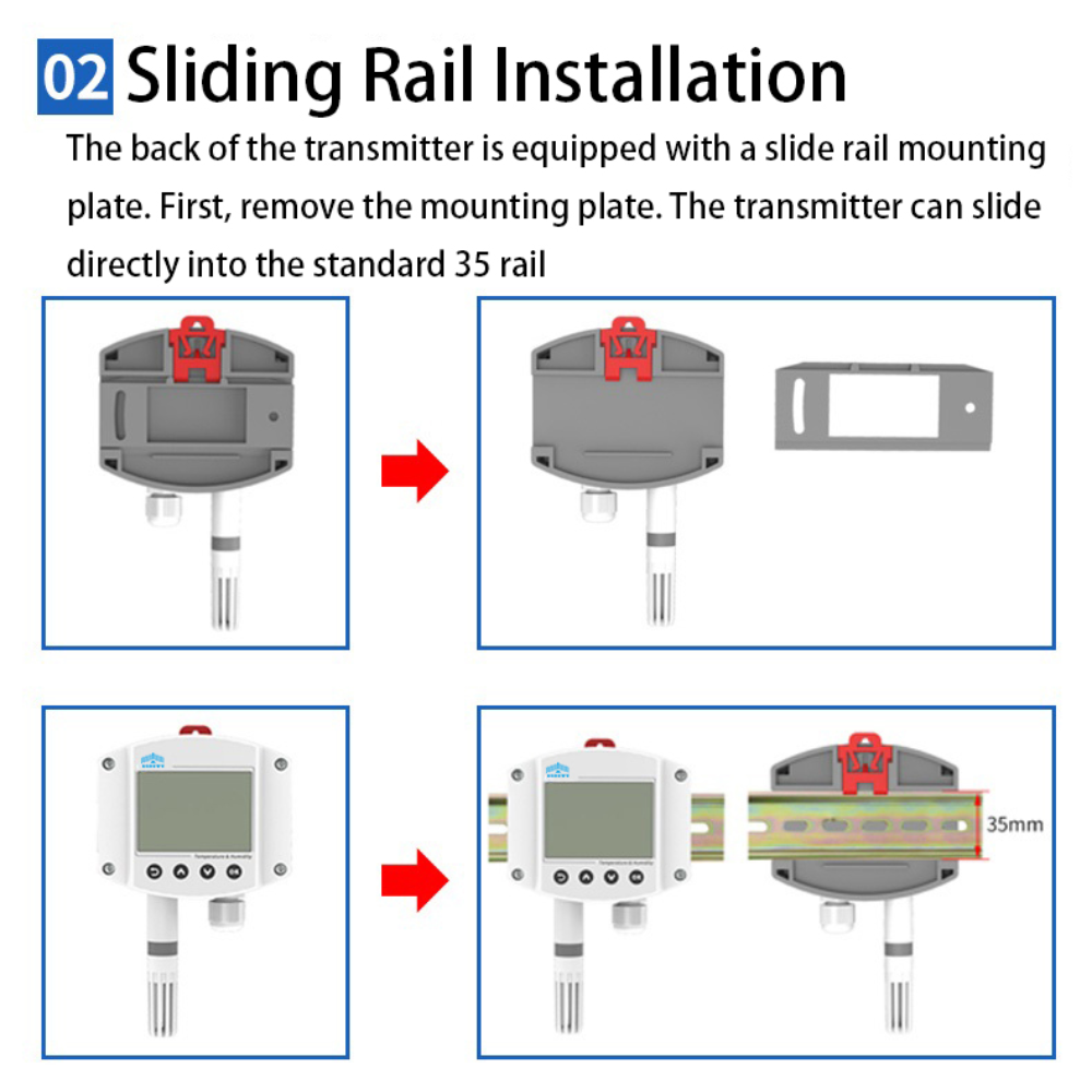 The transmitter is an industrial wall mounted high protection level enclosure. The circuit adopts industrial grade microprocessor chips imported from the United States and high-precision temperature and humidity sensors imported, ensuring excellent reliability, high precision, and interchangeability of the product. Adopting standard industrial interface 4-20mA/0-10V/0-5V analog signal output, it can be connected to on-site digital display meters, PLCs, frequency converters, industrial control hosts and other equipment, safe and reliable, with beautiful appearance and convenient installation.