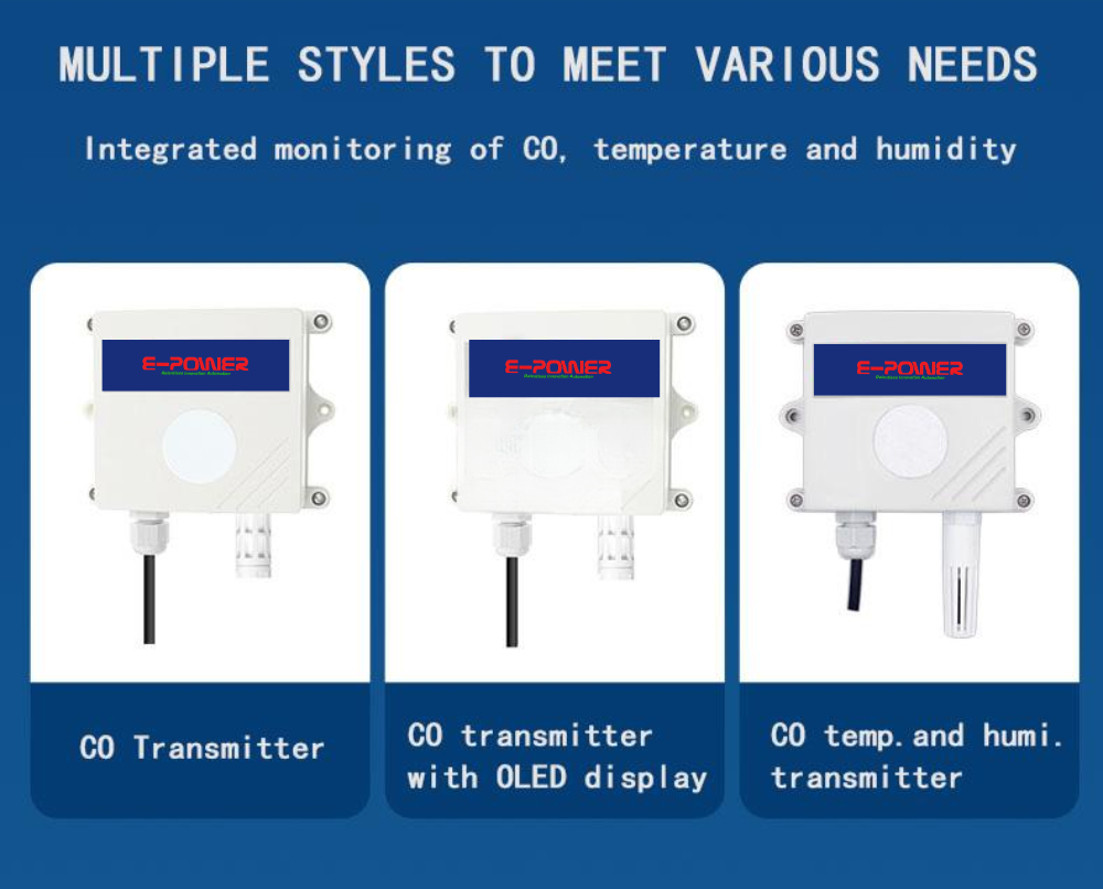 The carbon monoxide transmitter uses electrochemical technology to measure the concentration of carbon monoxide, which responds quickly and sensitively. This transmitter is widely used in air quality detection, smart homes, and other occasions that require carbon monoxide and temperature and humidity detection.